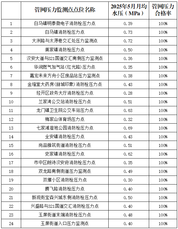 內(nèi)江市水務有限責任公司2025年5月管網(wǎng)壓力月報
